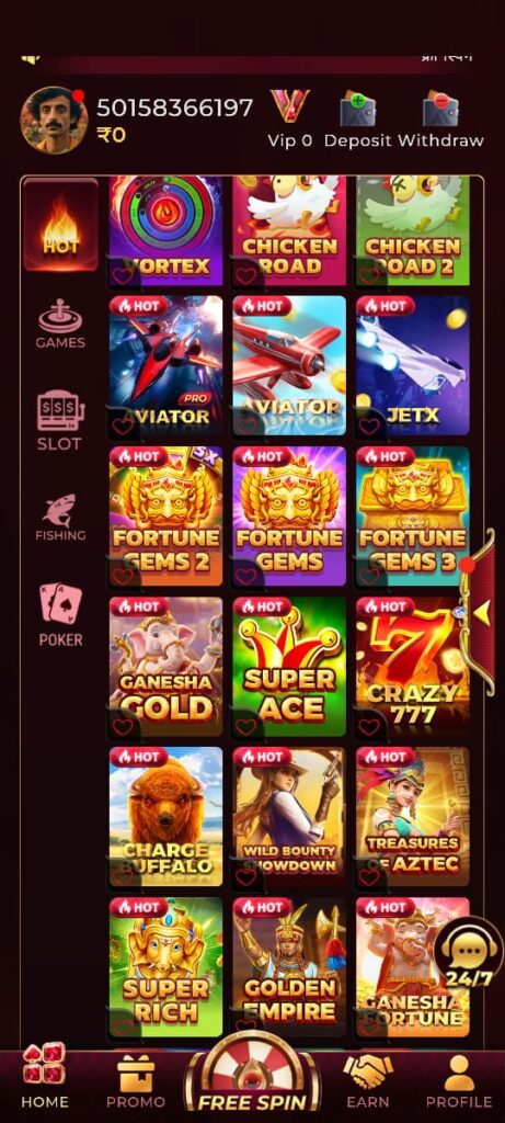 Is game me 25+ games avilable hai aap ko jo pasand aaye o game play kar sakte hai jaise aviator, wingo,chicken road, vortex,fortune games ,crazy 777 and all popular games